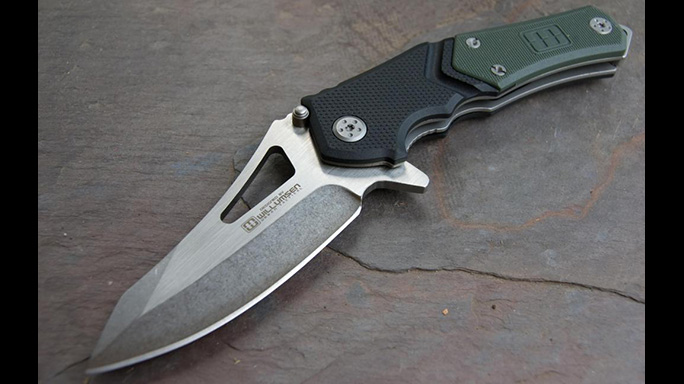 One of the most popular folding knives from Wilson Combat is the Star-Benza, a limited-edition collaboration made with Chris Reeve Knives. The Star-Benza features titanium frame-lock construction, a 2.94-inch, S35VN stainless steel blade, and Wilson’s signature Starburst grip pattern for enhanced traction. A double thumb stud makes it easy to deploy the blade, and Wilson includes an exclusive lanyard with an engraved titanium bead. The knife is 6.88 inches long overall and it weighs 3 ounces. (wilsoncombat.com)