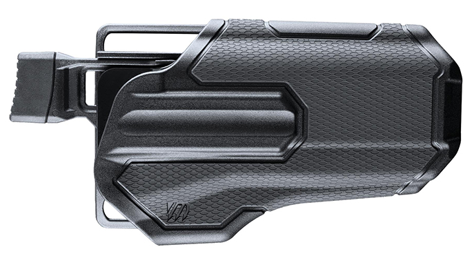 The new BlackHawk Omnivore is a multi-fit holster that accommodates more than 150 styles of semi-automatic handguns with an accessory rail. The active retention mechanism doesn’t wear the handgun’s finish, and three variants are available. It locks onto the company’s proprietary Rail Attachment Device in the Non-Light Bearing model, and onto the frame of the light in the Streamlight and Surefire models. A thumb release disengages the locking mechanism when drawing the handgun. The Non-Light Bearing model retails for $59.95. (BlackHawk.com)