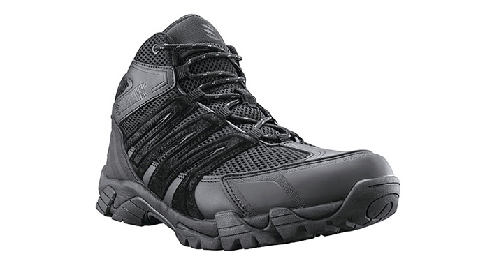 BlackHawk mid-cut boot works for training and missions. It is available in black or brown colors, is breathable, has TPU molded pieces, a non-slip rubber outsole, lightweight mesh uppers and would serve anyone with a professional need for a versatile boot at work or play well. Sizes 7-12 M, 13, 14 M. The Terrain Mid has an MSRP of $79.99. (BlackHawk.com)