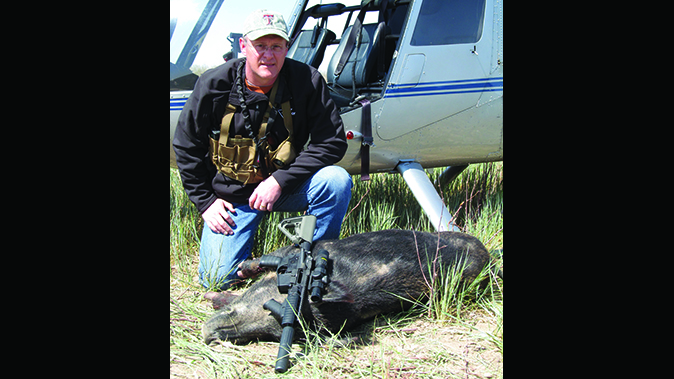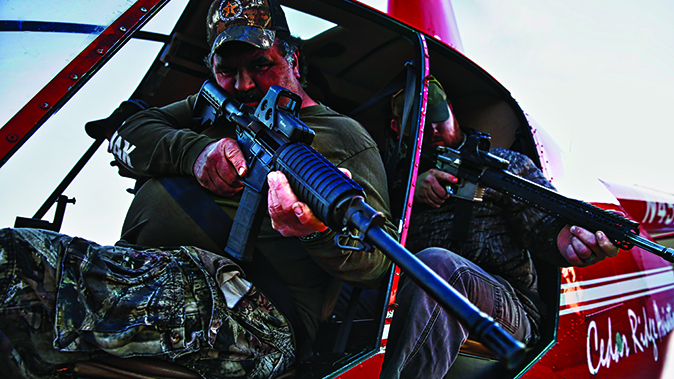 Hunting feral hogs from helicopters in Texas has spawned a growing niche market. However, taking care of business in this manner presents some challenging shooting scenarios. When asked about the quality of the gunners that went up during the three-day event, Johnson said, “These guys were the real deal. Several people who went up were former Green Berets, and they could shoot. I had one guy who emptied his AR-15, pulled out his pistol and killed three hogs with headshots from his pistol.”