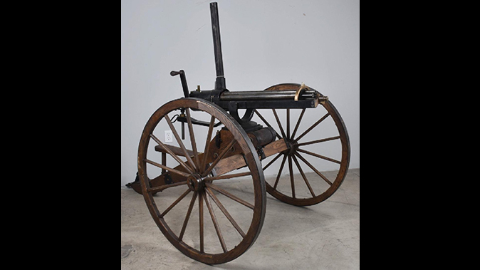 There are more than 150 firearms up for grabs here, including an 1877 Bulldog .45-70 Gatling battery gun; 1862 full-size .50 Gatling gun; a pair of Smith & Wesson revolvers belonging to whaling Captain Albert Sherman; 1851 Colt Revolver owned by Confederate Gen. John Creed Moore of 2nd Texas Infantry; boxed Colt King Cobra; M1 Garands; M1 Carbines; Ruger revolvers and rifles; Winchester rifles; Brownings; Remingtons; and more.