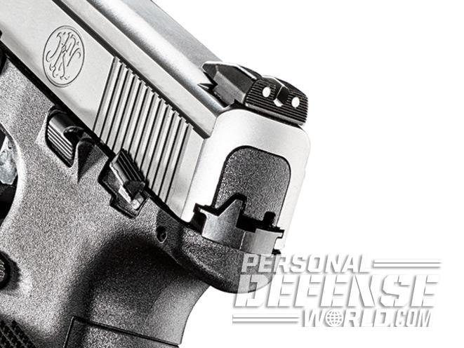 The wide, beveled mouth on the magazine well makes slapping a magazine in under stress a snap. Those magazines have polished bodies and polymer bases, and in the Compact version have 10- and 14-round capacities, with a spacer on the body of the latter.
