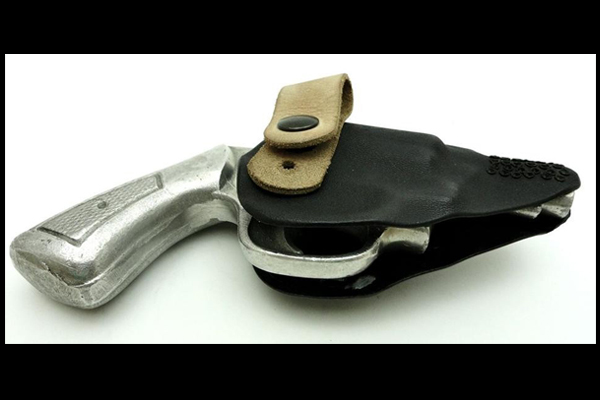 Molded from Kydex to specifically fit a small pistol, this holster allows the firearm to be drawn by pulling down on the grip of the pistol.