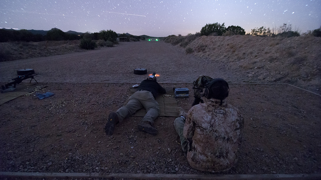 The final event took place on the 300-yard range. We gathered in the dark to tackle steel targets with Ruger Precision Rifles wearing Armasight CO-XLR-LRF night-vision sights behind day scopes. Thanks to these optics, the targets were as bright as day. One by one, we positioned ourselves behind the rifles and took turns shooting. Those of us waiting for a turn simply saw the muzzle flash and heard the ringing steel.