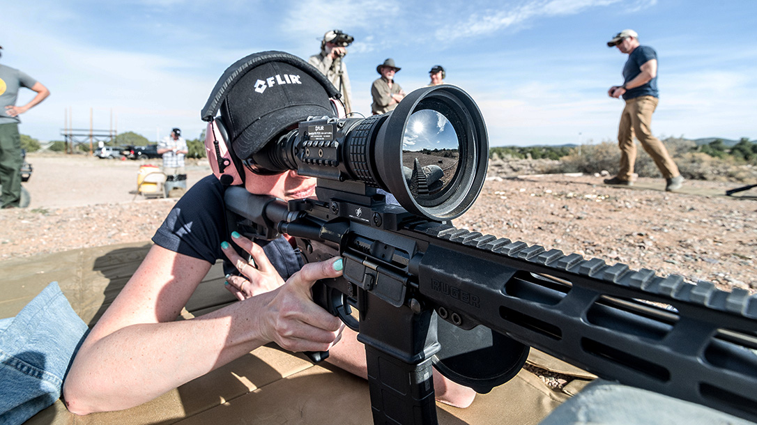 It was around 7:30 a.m. when I drove under the black steel raven straddling Gunsite Road. Writers milled around the classroom, sipping coffee and smiling about the donated Team Wendy EXFIL LTP helmets. Some tried to figure out how to turn on their FLIR ONE thermal cell phone cameras. On the white plastic tables near the back, several new optics were attached to various Ruger rifles.