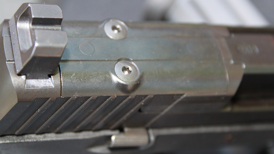 What really gets your attention is the rear of the slide, which FN modified to facilitate mounting of several of the most popular red dot sights. FN labels this as its patented FN Low Profile Optics Mounting System; it features a series of plates for accommodating at least 10 different red dot optics.
