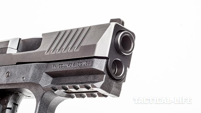 FN has quite a reputation for its barrels. The 509 uses a cold-hammer-forged barrel with a polished chamber and feed ramp. In an unusual move, however, FN machines the barrel with a recessed target crown—not unlike what we would see on a high-dollar precision rifle. While FN literature claims that this helps each bullet stabilize as it leaves the muzzle, I think the best benefit is that it protects the rifling in the event the pistol drops.
