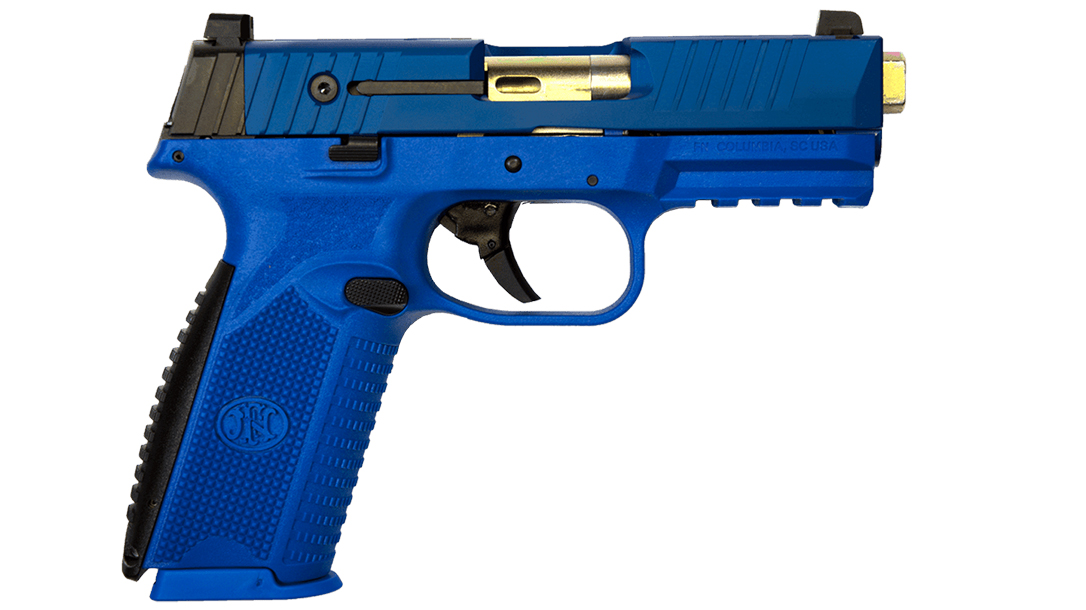 Available for agency quote now, the FN 509 Simunition ships out with three 17-round magazines that feature blue base plates; three interchangeable backstraps; a takedown wrench for disassembly; and a blue soft case. See the full specs and features below.