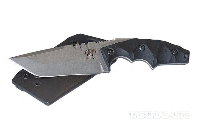 The FN Limited Edition Knife is made in the U.S. from CPM S35-VN stainless steel, which is hand ground and finished in a distressed wolf grey Cerakote. It has a G10 chunk handle, which offers positive grip and retention in both wet and dry conditions, and comes with a custom-made Kydex sheath with mounting hardware that is maneuverable into multiple ambidextrous carry positions.