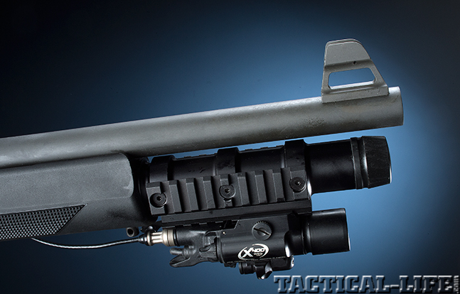 “The SLP Tactical has the traditional 18-inch barrel that is common to most non-NFA police shotguns. The barrel features a hard-chromed bore with Invector interchangeable chokes. This is a feature not commonly found on law enforcement models. The system allows the user to optimize the SLP for a specific load and/or environment. The SLP Tactical shotgun is equipped with an extended, six-round magazine tube that features three Picatinny accessory rail sections.