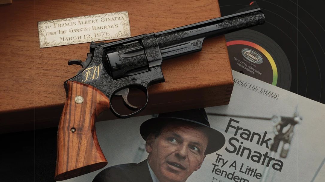 In the world of firearms collectibles, few items carry as much cultural weight, or style, as the absolutely stunning presentation revolver once gifted to “Ol’ Blue Eyes” himself, Frank Sinatra. Offered by Rock Island Auction Company in their December 6, 2025 sale in Bedford, TX, this masterpiece checks every box: historical provenance, master engraving, and top-tier condition.