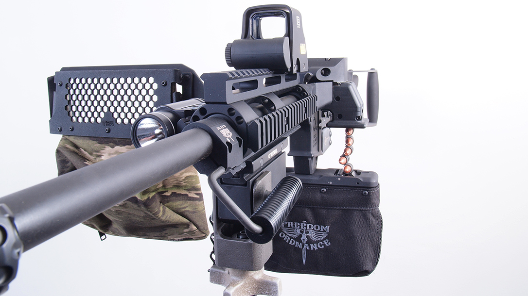 But a mature industry doesn’t have to be stagnant. Despite sales cycles that get distorted by political considerations, innovation and quality drive gun sales long-term. New and exciting products surface, but at unpredictable times. And the FM-9 belt-fed 9mm upper receiver from Freedom Ordnance is one of those products.