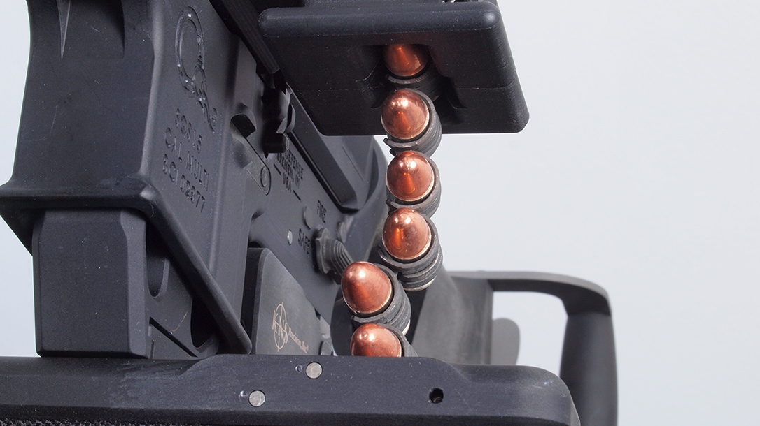 The FM-9 mounts to the lower receiver using the standard two pushpins, and the only additional step required to get it ready is to insert a block into the magazine well, which holds the ejector. The FM-9 functions on semi-auto and select-fire lowers, though slight modification might be needed to function with drop-in auto sears.