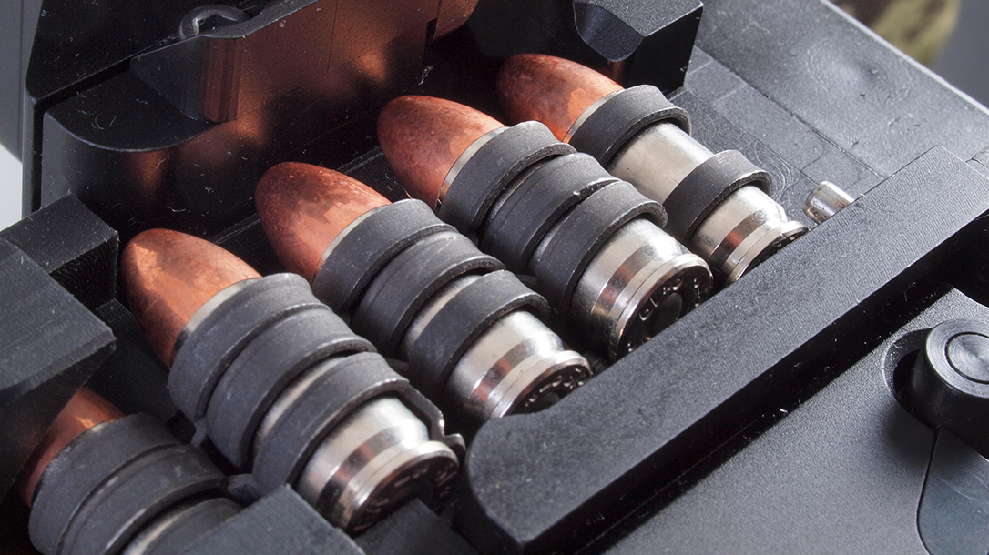 I tested the FM-9’s reliability in semi- and full-auto modes. Because belt-fed arms require more energy to cycle the action than mag-fed models, the FM-9 performs best with hotter rounds. I found that Tula, Winchester and Independence round-nose FMJs were reliable in the FM-9. There were zero stoppages even when firing bursts in full-auto. I experienced two stoppages while shooting the WinClean ammo in semi-auto. However, its flat-nose bullet did not feed reliably in full-auto. The Remington 115-grain FMJs did not cycle the action about 20 percent of the time, and 115-grain plated reloads from U.S. Cartridge Co. and Freedom Munitions’ 165-grain HUSH were completely noncyclical, though these loads work well in my magazine-fed 9mms, and the HUSH is a specialty low-velocity load.