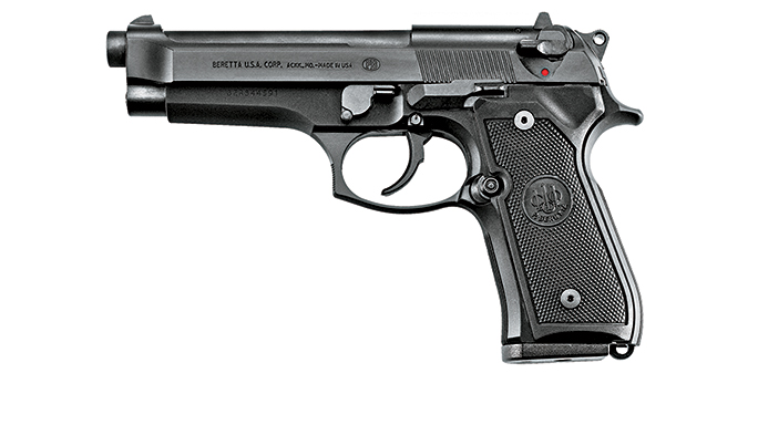 Beretta 92: The Beretta Model 92 is a DA/SA design that employs an open-slide, short-recoil, delayed-locking-block system to produce a faster cycle time. An ambidextrous safety/decocker makes it flexible for right- or left-handed operators, and the magazine release is also reversible. One of the most accurate full-sized 9mm pistols available, it is the overall design of the 92 that has kept it ranked among the best handguns in the world.