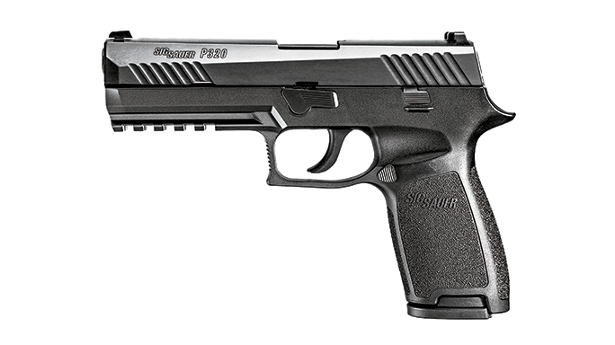 Sig Sauer P320: The P320 is Sig’s first polymer-framed, striker-fired handgun. The striker-fired DAO design can be equipped with two different trigger systems (one with an integral trigger blade safety) and features a short, crisp trigger pull with a quick, pronounced reset. The entire firing mechanism, frame rails and slide release are contained in a removable module that can be inserted into different-sized frames, which in turn can be fitted with different slides and barrels for four different pistol chamberings: 9mm, .40 S&W, .357 SIG and .45 ACP.