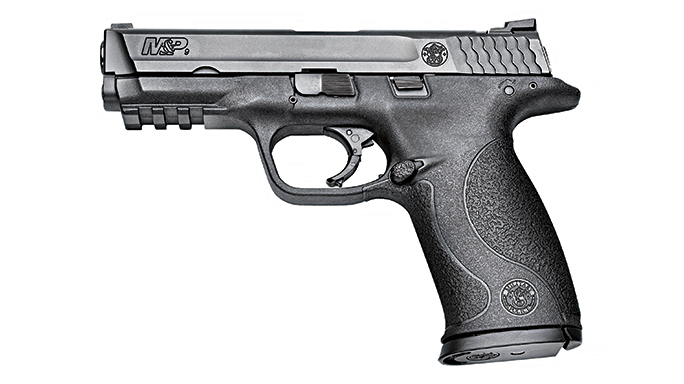 Smith & Wesson M&P: The polymer-framed, striker-fired M&P series features a Picatinny rail, reversible magazine release, ambidextrous slide stop, optional thumb safety and a contoured slide and frame. The M&P is available in 9mm, .40 S&W and .45 ACP, making it an all-around carry gun for law enforcement, military and civilian use with a capacity of up to 17 rounds in 9mm, barrel lengths up to 5 inches (through the Performance Center) and a remarkable carry weight for the full-size 9mm version of 24 ounces.