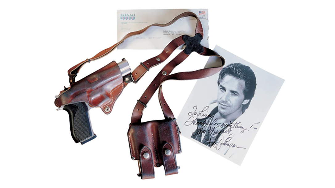 However, by the time production on “Miami Vice” began, Propmaster Charlie Guanci was unable to contact The Famous Jackass Leather Company. In 1980, Jackass founder Rick Gallagher had changed the company name to Galco – the Great American Leather Company – and in 1983 had moved it from Chicago to its present home in Phoenix. In the days before the internet, this made it quite difficult for Guanci to track down the holster Michael Mann wanted Don Johnson to wear!