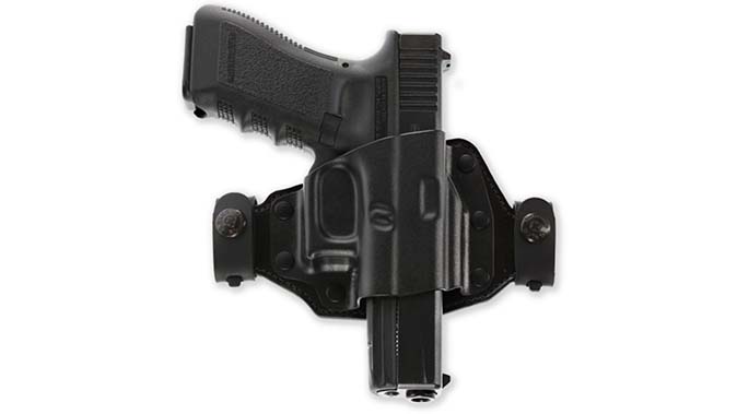 The Galco Quick Slide is based on the hybrid design of the company’s Kingtuk IWB and TacSlide holsters, only with added on-off belt loops. The holster features a flexible, lined steerhide backplate that pairs with the tough Kydex holster pocket. As a result, this boosts comfort, performance and durability, Galco says in its press release.