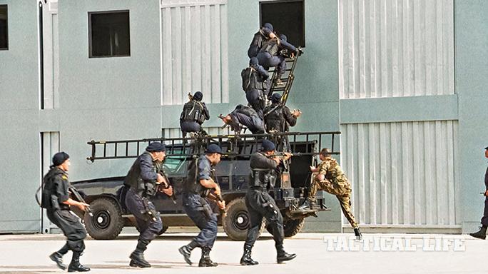In the case of the Hashemite Kingdom of Jordan, funding for special operations units is not a problem. That’s because the king is the former commander of the unit and a strong believer in the value of highly trained special operations troopers. In fact, Jordan sponsors one of the world’s foremost special operations gatherings, the Special Operations Forces Exhibition & Conference (SOFEX), which is held every other year at the King Abdullah I Air Base in Marka, Jordan. The most recent SOFEX took place in May of 2014. Reportedly, when Abdullah II became king, one of his great disappointments was that he would no longer be allowed to carry out parachute jumps!