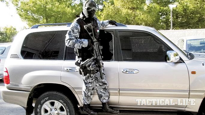 One advantage of SOFEX being held in Jordan is that members of JSOC get a chance to see and try the latest weaponry. For their rifles the Jordanians use the HK416 and G36 as well as the U.S. M4. For submachine guns, they use the HK MP5 (including MP5SDs), UMP and MP7. The desert environment in Jordan lends itself to long-range shooting, which is reflected by the number of sniping rifles available to operators. These include the Sako TRG-22 in 7.62mm, Sako TRG-42 in .338 Lapua, the Accuracy International L115A1 in .338 Lapua and a 7.62mm DPMS Panther rifle. At least some Russian VSS suppressed sniper rifles are available as well. For anti-materiel rifles they use the Barrett M82A1 and M95, the Accuracy International AS50 and the McMillan TAC-50, all in .50 BMG. To the best of my knowledge the only shotgun used is the Benelli M4.