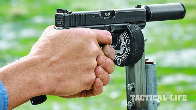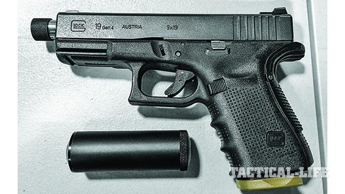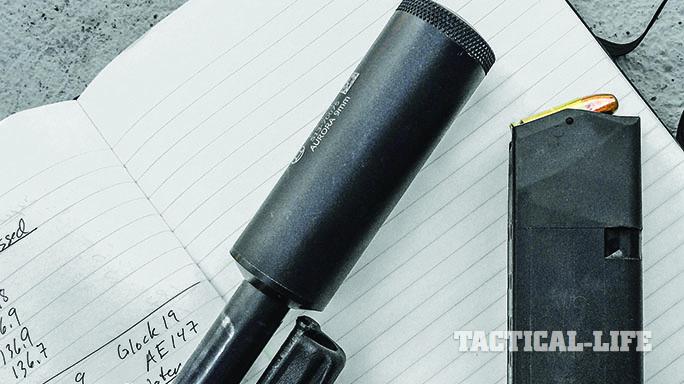 In testing, the micro Gemtech Aurora, with its wipe-and-washer internals, ran flawlessly when mounted on the author’s G19 Gen4 via a threaded S3F solutions barrel.