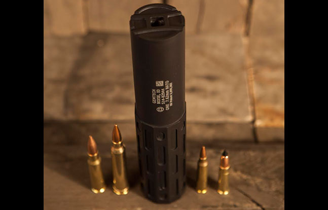According to Gemtech, “Use it on everything from your .300BLK carbine to 5.56 SBR and on up to 300WM; it’s the only silencer you’re going to need for your centerfire rifle. Yeah. From 5.56 to 300WM. How’s that for functionality?”