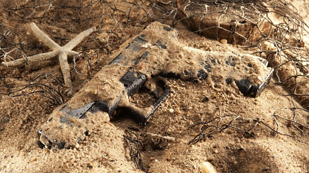 I then left the pistol on the ocean floor for a full six months, recovering it on my next trip to the area. Subsequent examination showed only minor—almost microscopic—pitting on the slide lock lever and a small, oddly shaped pit on the left-hand upper corner of the slide just forward of the grasping grooves. Nothing else rusted—not even the internal surface of the bore.