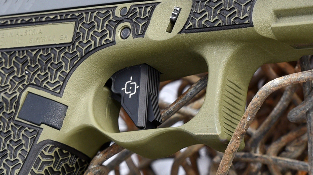 Odin’s Workshop took this gun over the top. This custom shop does some of the finest laser stippling on the market as far as I am concerned, and it took a frame that most people would probably throw away and created a work of art. When I got my Glock back from Odin’s, I had to check the serial number because I didn’t believe it was the same gun. There were no sharp edges, gouges or small cracks. Odin’s Workshop also gave the frame a double-undercut triggerguard.