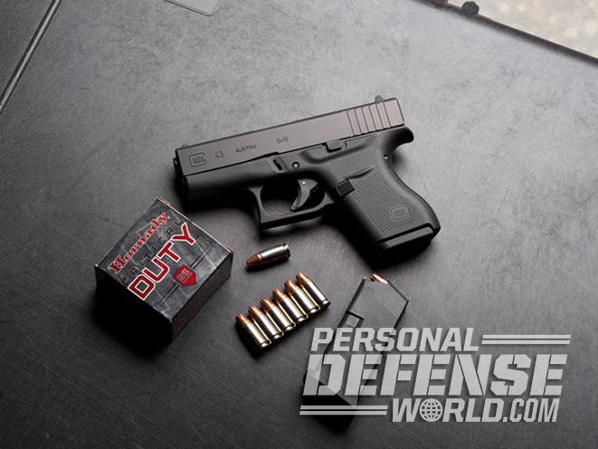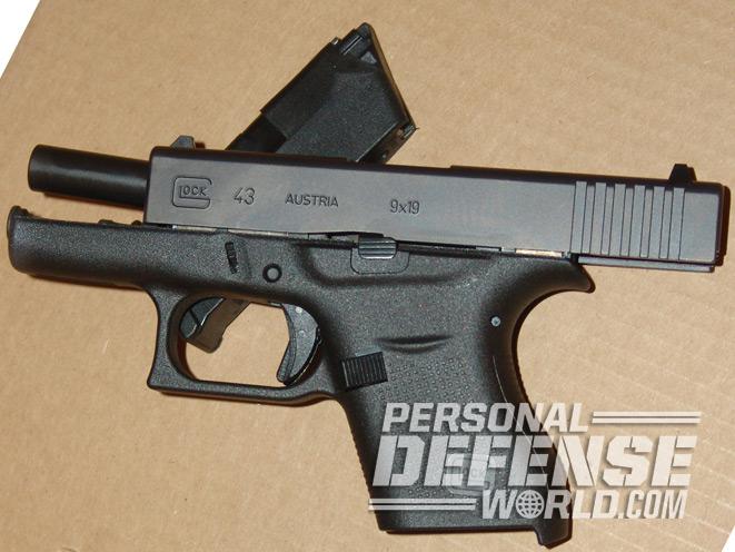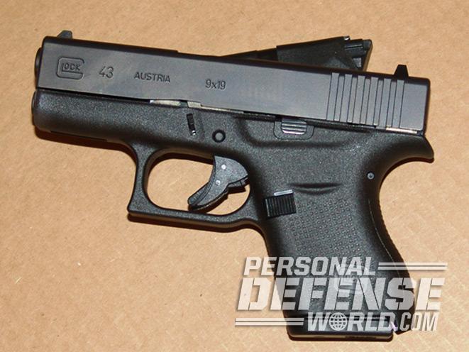 At the range, the pistol surprised me. In both slow and rapid fire, the pistol had recoil more like a .380, so the sights stayed on target with little effort. Like other Glocks I have shot, the recoil impulse went straight back, feeling more like a push than a jarring buck. Like other Glock pistols, the Glock 43 has a recoil-absorbing frame, a dual recoil spring assembly like Gen4 models and an excellent grip angle. All of this combines to make the pistol comfortable to shoot accurately. Why is that important? If a firearm is uncomfortable to shoot—or worse, difficult to control—a shooter will be reluctant to practice. Without frequent practice, no shooter can be confident. So who wants to stake their safety on a pistol that they are not proficient with? The Glock 43 is fun to shoot and accurate beyond most other concealed-carry pistols I’ve tested.