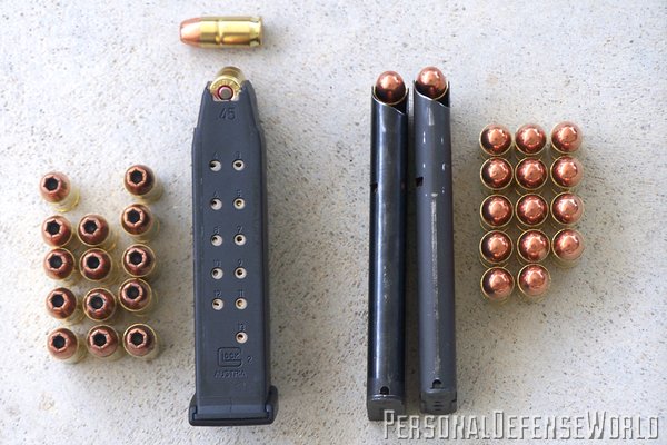 Of course, no handgun bullet is a guaranteed death ray. In another incident, the involved officer had to shoot an armed and dangerous suspect nine times with 230-grain Gold Dot before the man dropped his weapon and died from a head shot. The high capacity and shootability of his GLOCK 21, in that case, had allowed the involved officer to keep up a drumbeat of accurate fire until he finally won the gunfight. Wounded early in the shootout and faced with a crafty opponent who knew how to move and take cover, the lawman had emptied two double-stacked GLOCK magazines and most of his third and last one when a deliberate head shot dropped the attacker. With an eight- or nine-shot older-style .45 AUTO, and the same standard complement of two spare magazines, instead of the GLOCK 21, that incident might have had a much more tragic outcome.