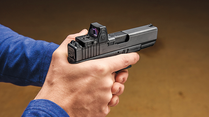 The proof is in the shooting, clearly, and I asked GLOCK Sport Shooting Foundation (GSSF) Rangemaster Justin Hixon to join me at the indoor range at the GLOCK training facility in Smyrna, Georgia, to put the Glock 17 Gen4 MOS and Glock 19 Gen4 MOS through their paces. Justin recently began competing in a number of action shooting disciplines, including GSSF matches, and I knew he would bring a fresh perspective to the versatile new products.