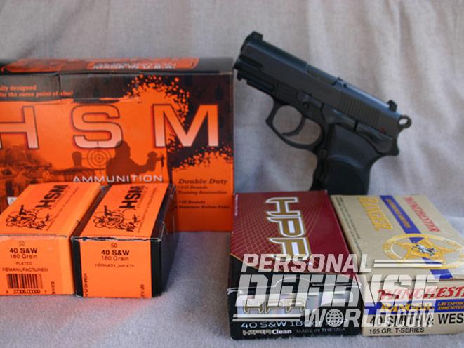 To test-fire the Thunder 40, I selected three brands of .40 ammunition. Some of the smaller ammunition producers are really making some first-class products, and one such example is HPR. I used its 180-grain jacketed hollow-point (JHP) load with “Clean Technology” to keep your handgun cleaner between uses. Another of these smaller outfits is HSM Ammunition. The company has a Double Duty pack that contains 250 rounds of 180-grain full metal jacket (FMJ) remanufactured cartridges and 50 rounds of 180-grain Premium JHP rounds for duty/defense. Lastly is Winchester Ranger LE ammunition in a distinctive box. The load I selected has Winchester’s 165-grain T-Series JHP bullet and it really steps out there. You can see my velocity readings in the accompanying performance table.