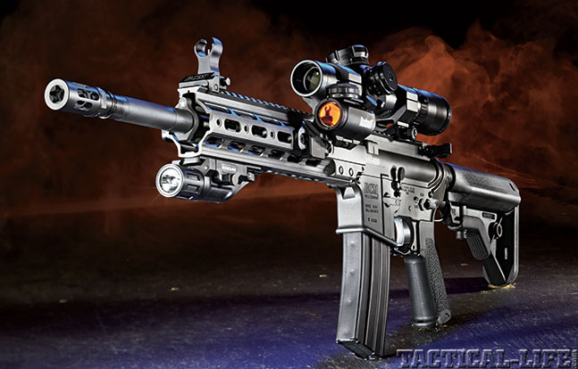 One welcome and standard feature included with this rifle is the HSP Thorntail offset light mount built by Impact Weapons Components and paired off with the Inforce WML-HSP weapon-mounted tactical light. The light features only a momentary on/off pressure button and 200 lumens of output with a tight beam designed for close to intermediate ranges typically encountered in suburban and urban settings. The unit sits at a 45-degree angle for easy thumb activation and can be mounted on the left or right side of the handguard.
