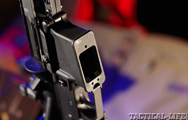 After the KeyMod forend, the next thing I noticed about my test rifle was the magazine well. Most manufacturers simply put an adapter in the standard AR magazine well so it will fit the double-stack 9mm magazine. CMMG did not take the easy path and simply add an insert into a normal AR lower. Instead, the lower is milled to accept only the 9mm SMG magazine. This feature alone told me that CMMG had taken extra steps to make sure its gun would be of the highest quality and dependability.