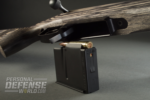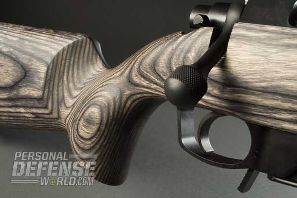On the left side of the action’s rear, a small pivoting tab releases the bolt for removal; on the right side, the two-position safety varies a bit from tradition in not locking the bolt along with the trigger when activated. Down below there’s an extremely nice single-stage Timney trigger with a 4-pound break that doesn’t know the meaning of the terms “creep,” “take-up,” or “overtravel.” The trigger sits in front of a very comfortable right-hand palm swell/pistol-grip stock section, and a Pachmayr Decelerator Pad brings up the rear. Elsewhere, there are two sling/bipod studs fore and one aft.