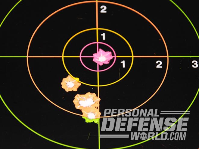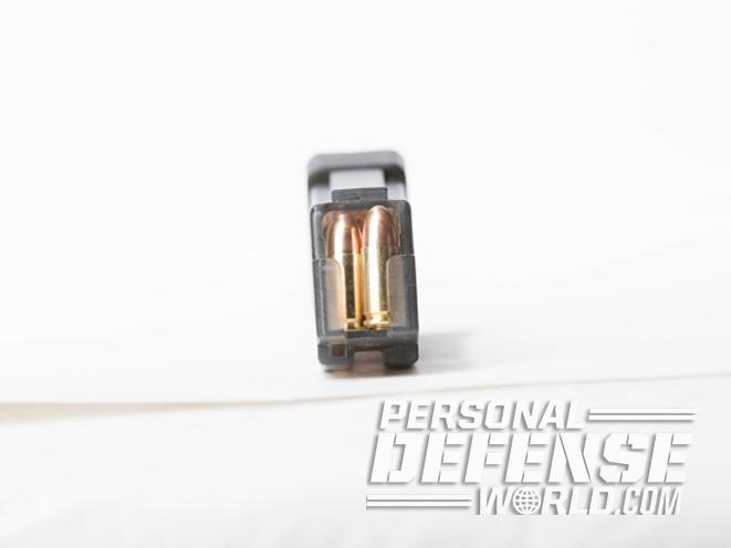 During reliability and accuracy testing, all of the ammunition functioned flawlessly. However, the 124-grain jacketed hollow point load had a tendency to hang up while feeding the first round from the magazine. Accuracy at 25 yards from a benchrest while using the iron sights was also impressive.