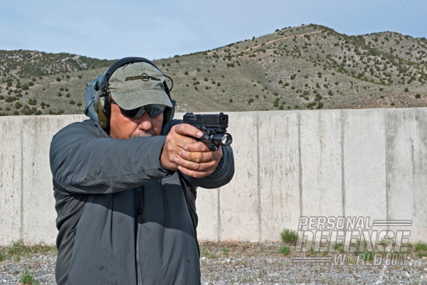 Range testing started with simple drills from the holster. It was smooth to draw and worked really well with either the SureFire X300 or Streamlight TLR-1 from the Safariland Model 6004 on my thigh. It never missed a beat with either light, even with +P ammunition. Ejection was consistent with full-power ammunition but proved a bit erratic with the practice stuff. It never failed to either extract or eject, but brass would occasionally come straight back onto my hat—a bit annoying, but it always worked. Accuracy on the move with multiple shots was great, with most everything landing inside a 6-inch circle. The FS Nine shoots really soft, especially with the 115-grain Black Hills practice ammunition. Even when using DoubleTap’s +P ammunition, it remained very controllable. Purely subjective, but it seemed to shoot a bit softer than most striker-fired polymer pistols I’ve tested.