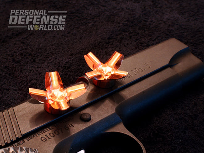 The 185-grain CHP gives close to 600 foot-pounds of energy, and the 230-grain CHP gives deeper penetration while still expanding to a 1-inch diameter—an outstanding defensive load!