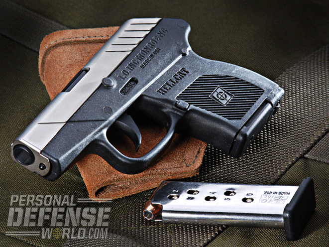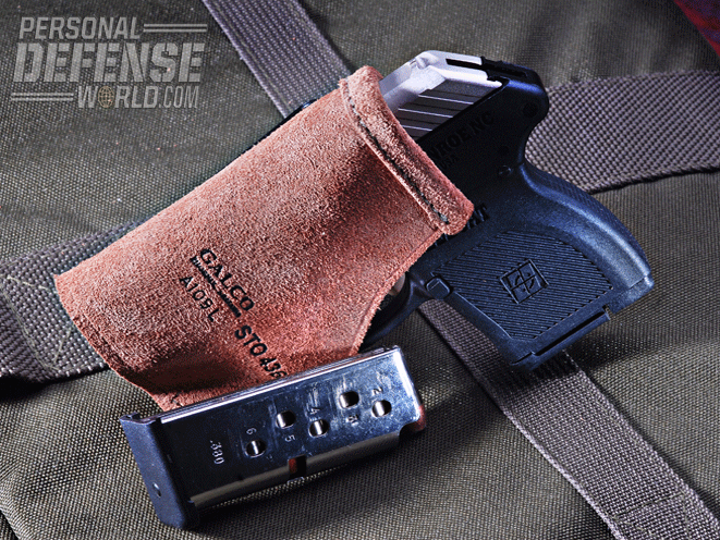 Though we often refer to these small, lightweight semi-autos as pocket guns, it doesn’t necessarily mean that we are advocating carrying the gun in a pocket without a holster. It’s just too easy for these little guns to rotate in the pocket—especially with a polymer frame gun with its heavier steel top end. Use some sort of scabbard that positions the gun so that it can’t move and also covers the trigger so that it can’t accidentally be pulled. I like Galco Gunleather’s Horsehide Front Pocket Holster for this type of carry. I also used a Galco Stow-N-Go Inside-the-Pants Holster with belt clip. It can be worn on the strong side or in the crossdraw position, and its reinforced holster mouth ensures a quick, uninhibited presentation and easy re-holstering. Again, there are many different ways to carry a small pistol but if you put it in your pocket use some sort of holster to make the gun easy to access quickly while carrying safely.