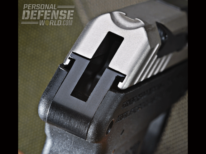 After a lengthy pull, my test sample’s trigger breaks at about 6.75 pounds. It takes a purposeful pull of the trigger to discharge the gun, and that’s a positive feature for a pistol that does not possess a manual safety. The DAO trigger pull provides a single strike. The slide must be retracted to allow a second attempt. That’s probably a good thing anyway. Why keep attempting to detonate a cartridge that didn’t fire on the first attempt? Better to rack the slide and attempt again with a new cartridge.