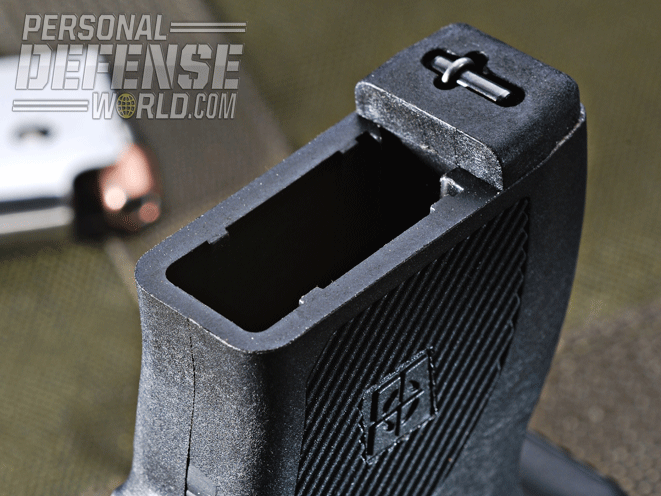The trigger mechanism is actually housed in an aluminum sub-frame that is pinned into the polymer frame. Examining the manual that came with my test gun it mentioned that the gun features a slide hold open device. Try as I might I couldn’t find any evidence of this feature on my gun. When I spoke with I.O. Inc.’s Uli Wiegand, he told me that they dropped this particular feature. “The gun is not a target pistol so you don’t need the hold open feature. It’s just a self-defense pistol, so we decided to make it very easy and reliable.” Accordingly, the slide will not lock back when the last shot is fired, nor can it be locked open to prove that it is unloaded.