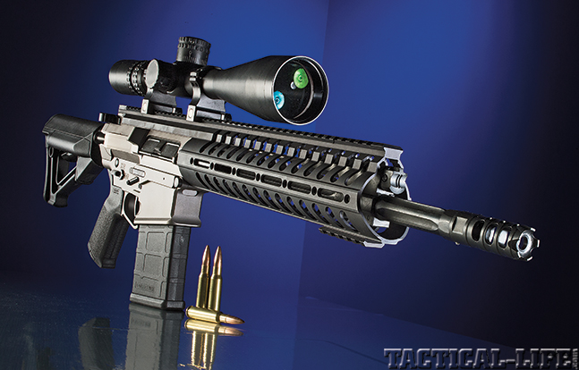My test P308 was equipped with a 14.5-inch barrel with a permanently attached muzzle brake to bring the overall barrel length beyond the minimum 16 inches required by the BATFE for a non-regulated rifle. So, while it may give up some energy at longer ranges, it is very effective at ranges within 500 yards. It was accurate, too. Using a Steiner 5-25x56mm riflescope, the gun printed groups of less than 1 inch at 100 yards. That’s fine performance. And during the evaluation, whether testing its accuracy from the bench or using an EOTech XPS3 holographic weapon sight for tactical drills, there were no malfunctions of any kind. With the shorter barrel, this gun is a good candidate for work in confined spaces like those encountered in structure clearing. And the muzzle brake was effective at reducing felt recoil and muzzle rise, making follow-up shots much faster and easier.