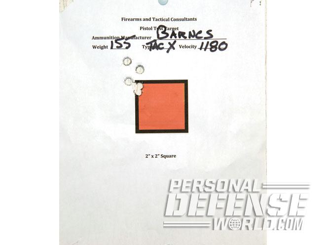 Accuracy testing proved impressive, especially with Barnes’ new 155-grain TAC-XP hollow points. Having used it in .40 S&W for years, this cartridge has proven to be an excellent self-defense projectile. It being loaded to velocities approaching 1,200 feet per second (fps) only makes it better. Barnes now offers its TAC-XP in its VOR-TX line of ammunition. Offered in numerous pistol and rifle loads, the TAC-XP is becoming one of the most popular self-defense rounds available. It expands in tissue, performs incredibly well through barriers and is consistently accurate.