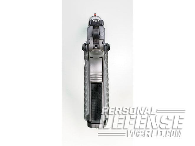 Three 8-round magazines were provided and worked well. My Tripp mags and a few Wilson Combat magazines also ran fine. The only issue that arose was one typical of stock 10mm pistols. The part of the slide stop the empty magazine pushes up on extended just a bit too far into the lower, causing the slide to lock open mid magazine. Longer loads or different bullets will contact the slide stop on the way up. It was only occasional while using the self-defense loads, but more frequent with the practice loads. There’s an easy fix to this issue, however: Either file a bit off the slide stop or install a different one. Once fixed, the TAC Ultra FS ran without a hitch on everything from slow fire to double-taps, triple-taps and quick strings of fire. It locked open on all of the magazines, which is rare for a 10mm 1911. The mag well is also beveled, which helped make magazine swaps fast and precise. None of the pistol’s parts shook loose during testing, even with some pretty stout loads.