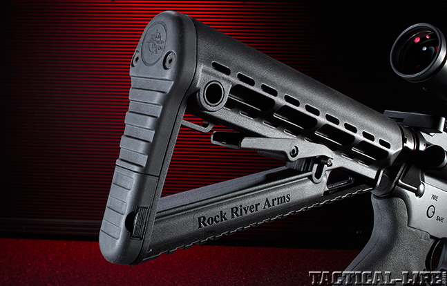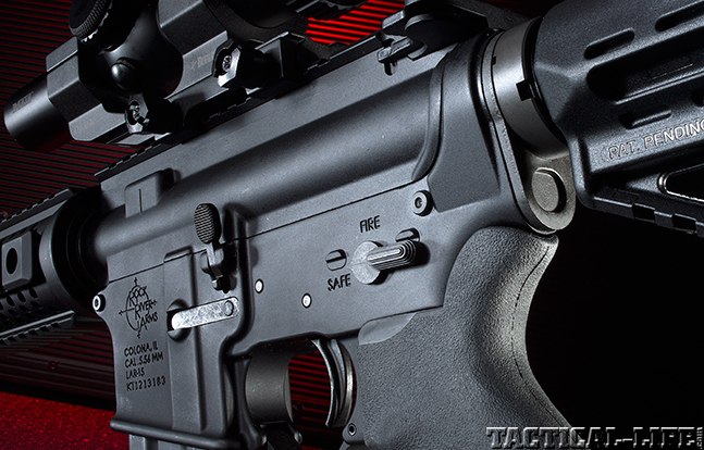 For the lower receiver, RRA offers several grip options. My test sample came with an Ergo SureGrip rather than the standard A2 grip. The SureGrip provides three advantages over the standard military grip: It is made of rubber and gives a tackier feel, it fills the hand better, and it contains a small storage compartment. RRA’s Delta CAR buttstock, riding on a buffer tube that offers six length-of-pull positions, is nothing short of excellent. The stock’s release is in the center, not on the bottom, which prevents accidental repositioning of the stock since it can’t be bumped like the GI stock can. There is a Picatinny rail on the bottom to mount additional accessories. An ambidextrous quick-detach (QD) sling attachment port is located near the butt of the stock.