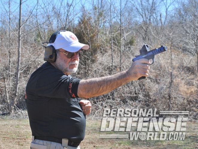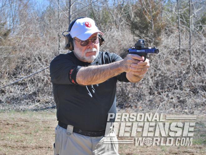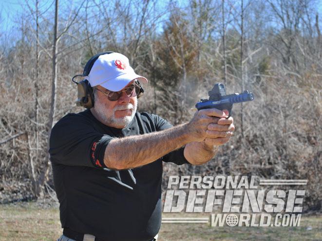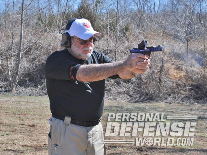 I have recently tested a number of red-dot-sighted pistols and have not yet gotten accustomed to how much that little red dot bounces around while you’re trying to aim. So while I would like to say I went one round for one clay at a steady cadence, the ingrained sense of honesty all gun magazine writers possess forces me to tell you that it took more rounds than I had expected. But I had a heck of a lot of fun doing it! The Ruger ran like a champ and we are still waiting for the first malfunction to occur, and that is something you can’t always say about out-of-the-box rimfire pistols.