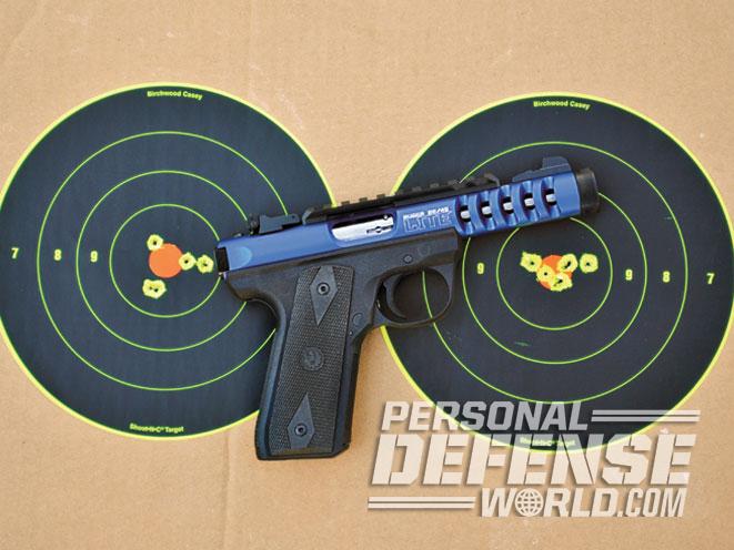 The 22/45 Lite was tested for accuracy from a MTM K-Zone rest at 25 yards with four different brands of 22 LR ammo. It showed a preference for slower-moving bullets and performed best with the CCI Pistol Match and Remington Subsonic loads, both of which averaged under 2 inches for the three, 5-shot groups fired. Considering the 22/45 Lite’s short barrel and sighting radius, I found its performance very satisfying.
