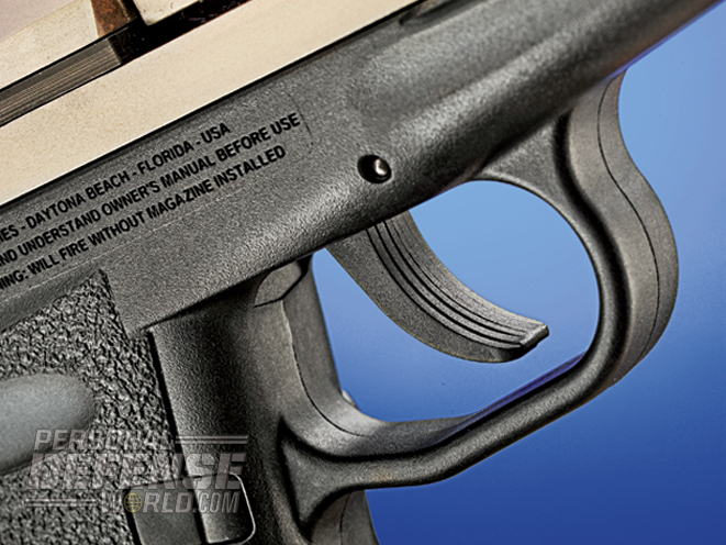 The CPX-2 is set up for double-action-only (DAO). On my sample, the effort to pull the trigger back registered at 10 pounds with the usual stacking as the mechanism reached its most rearward position. It was very smooth, and I found that pulling the trigger back many, many times resulted in a very consistent pull. The trigger guard has a reverse curve up front as to allow the weak hand to brace the weapon in a now common Weaver stance. I also found there is enough room to shoot the gun with winter gloves on, although I would use only the lightest-weight gear I could find.