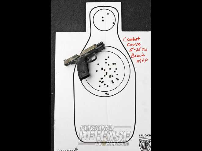 The Bowie M&P really began to shine when we began shooting at speed. Running the state-mandated qualifications course at double speed yielded a perfect score. Firing controlled pairs on a steel target placed 10 yards away was also especially gratifying.